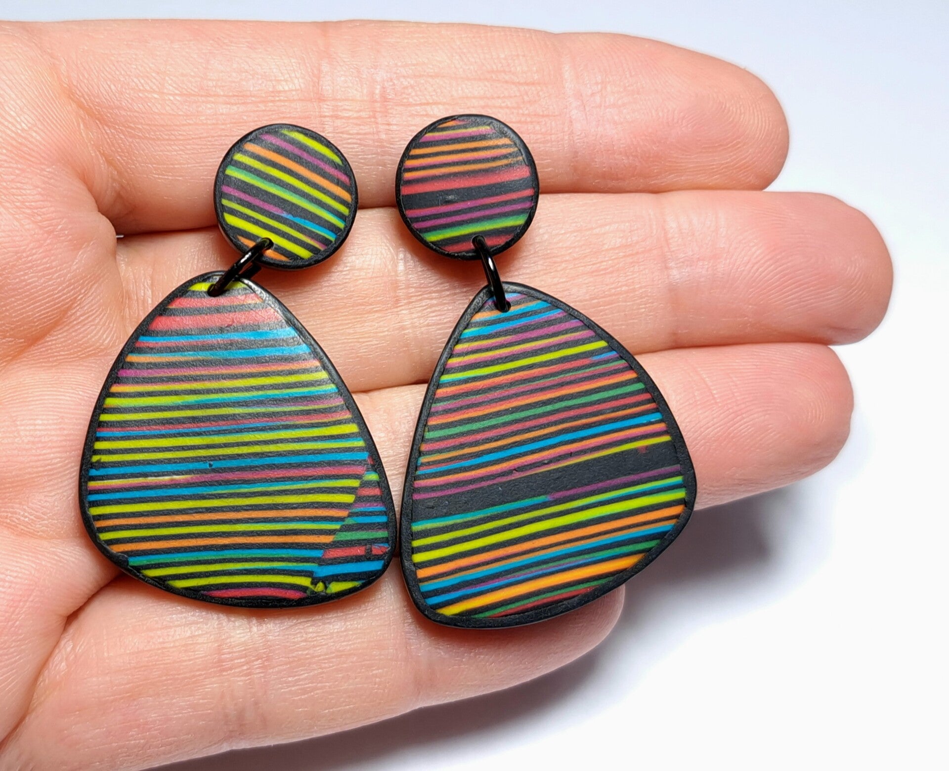De streepjes zijn in de kleuren zwart, geel, oranje, rood, roze, groen, blauw en paars en hebben een zwarte rand om het nóg mooier te maken.