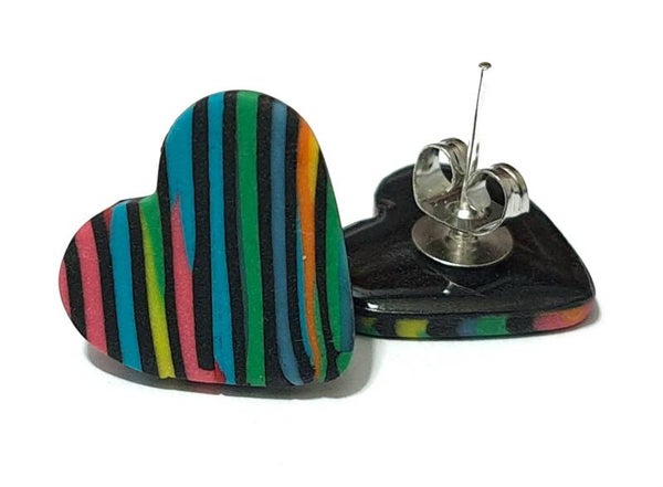 Deze leuke hartjes zijn gemaakt van polymeer klei, dus heerlijk licht om te dragen.
