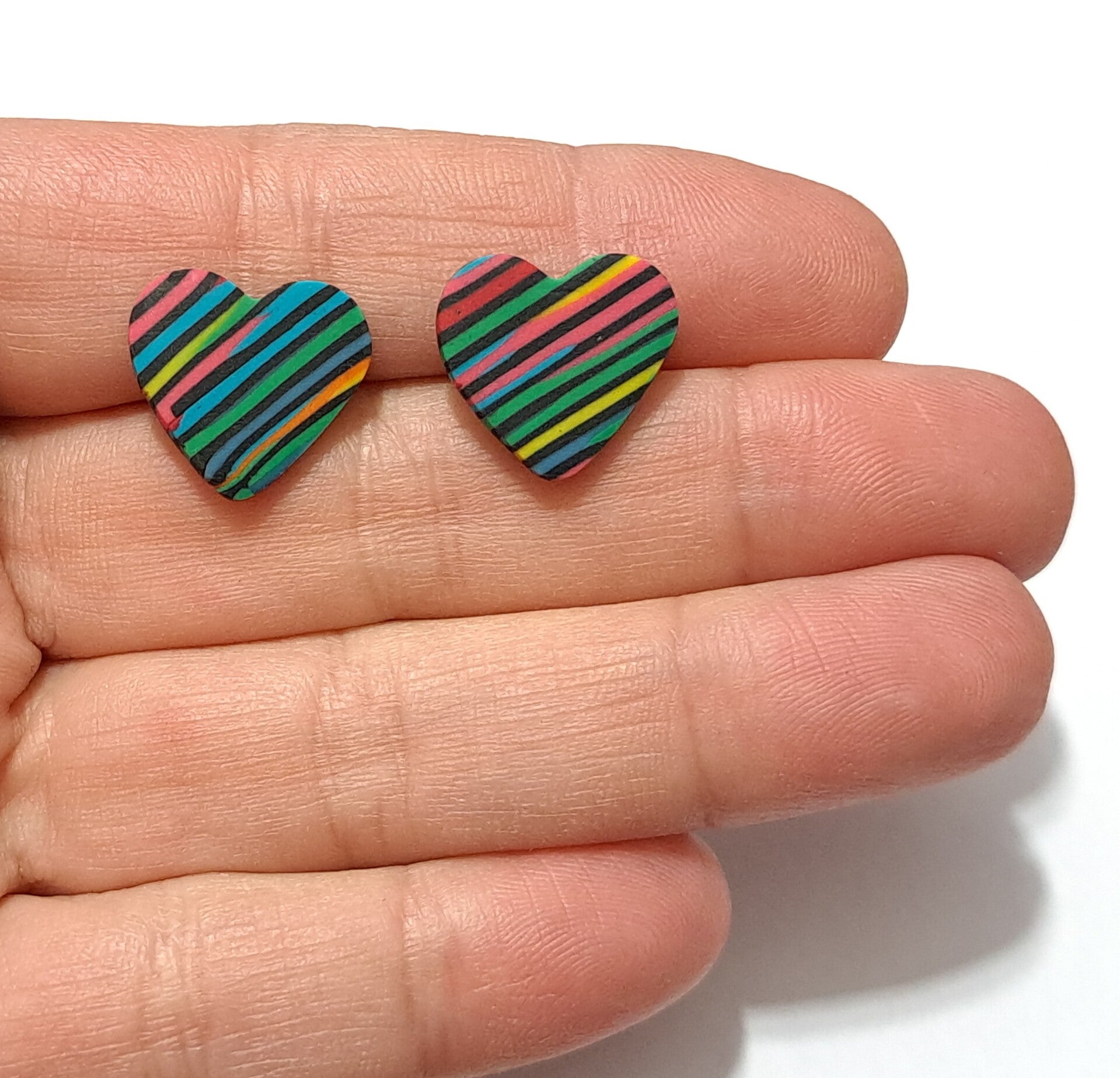 Deze leuke hartjes zijn gemaakt van polymeer klei, dus heerlijk licht om te dragen.