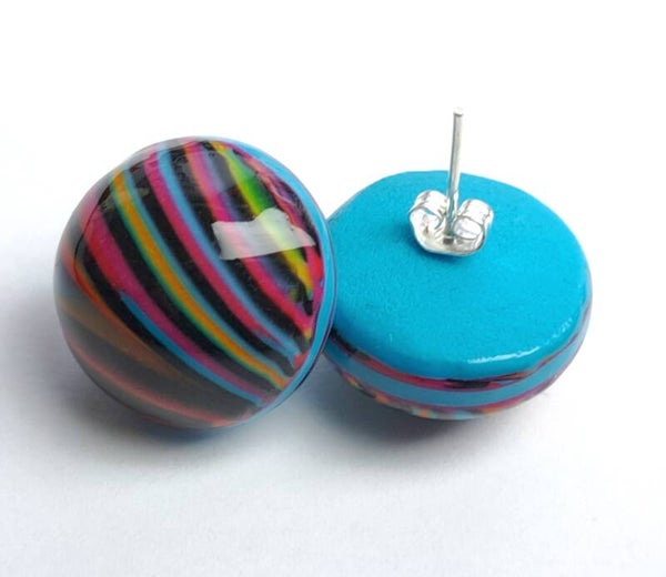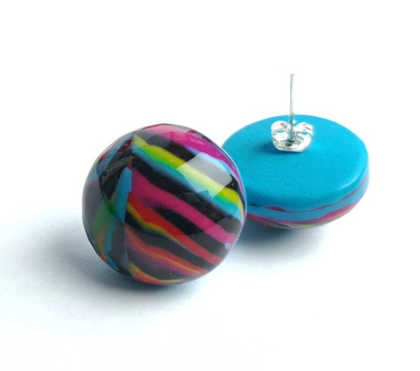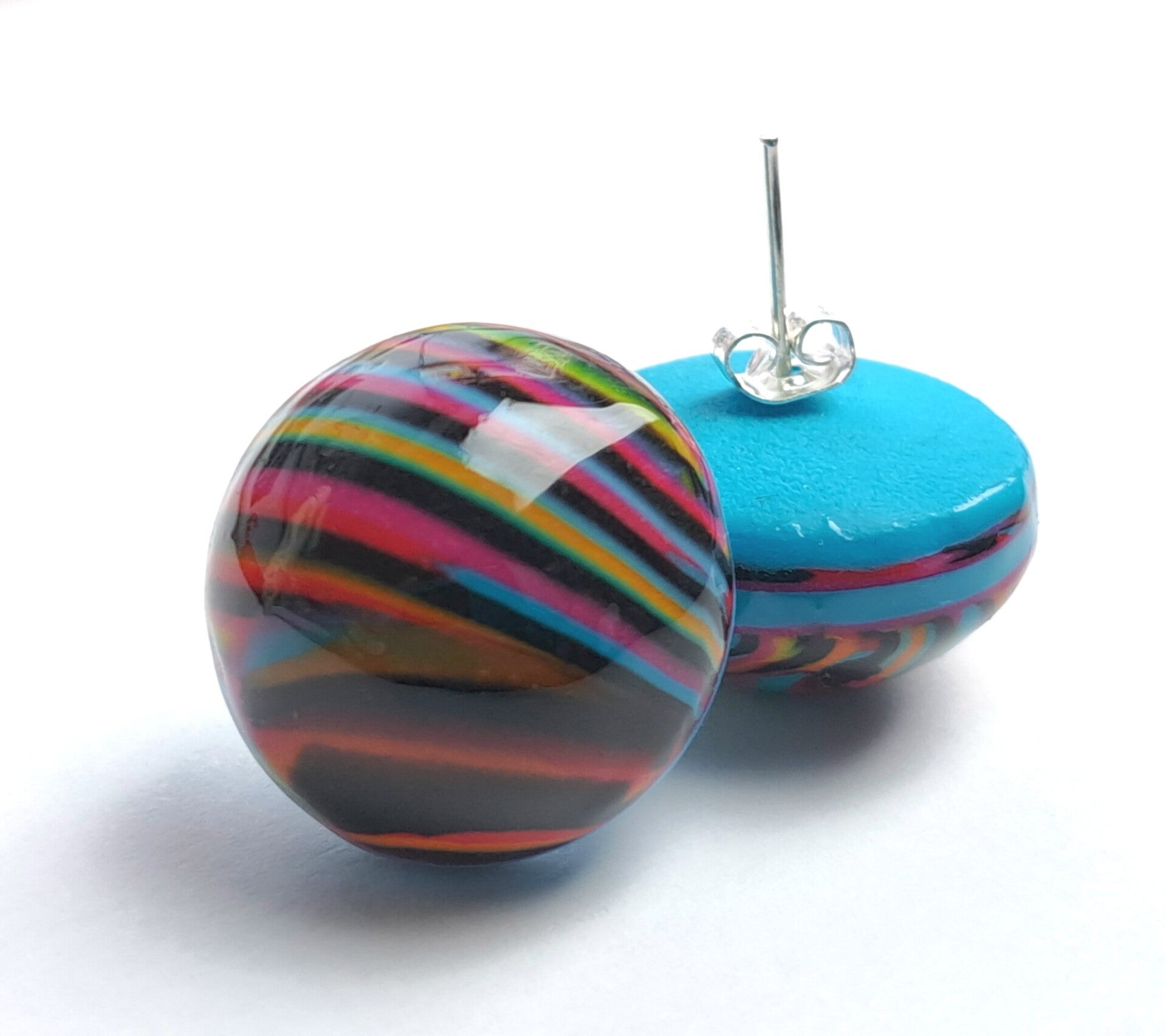 De achterkant van de oorbellen hebben een stekertje die is meegebakken in de aqua klei.