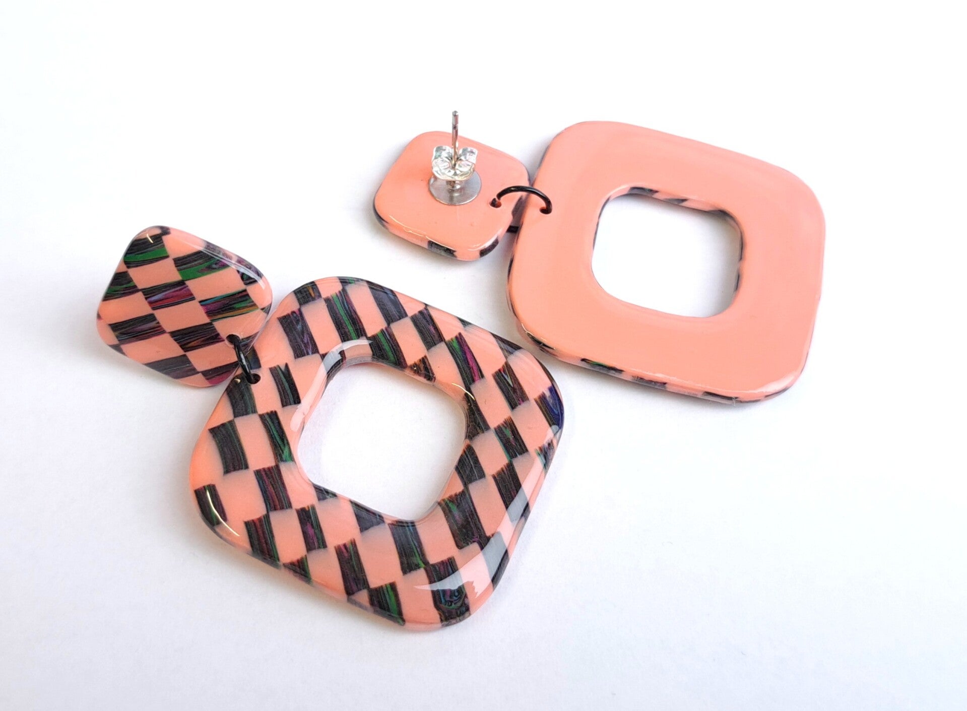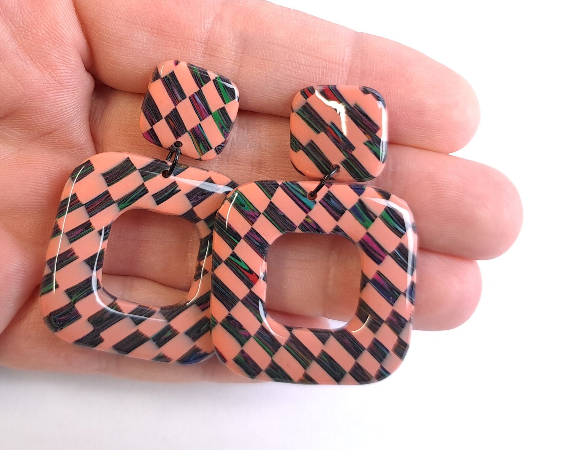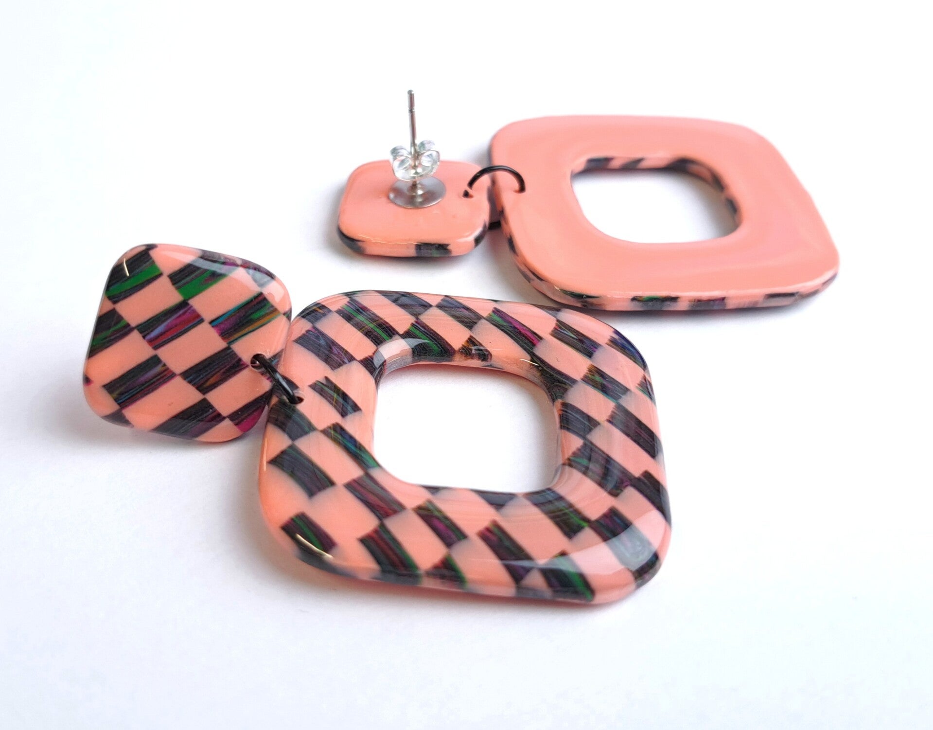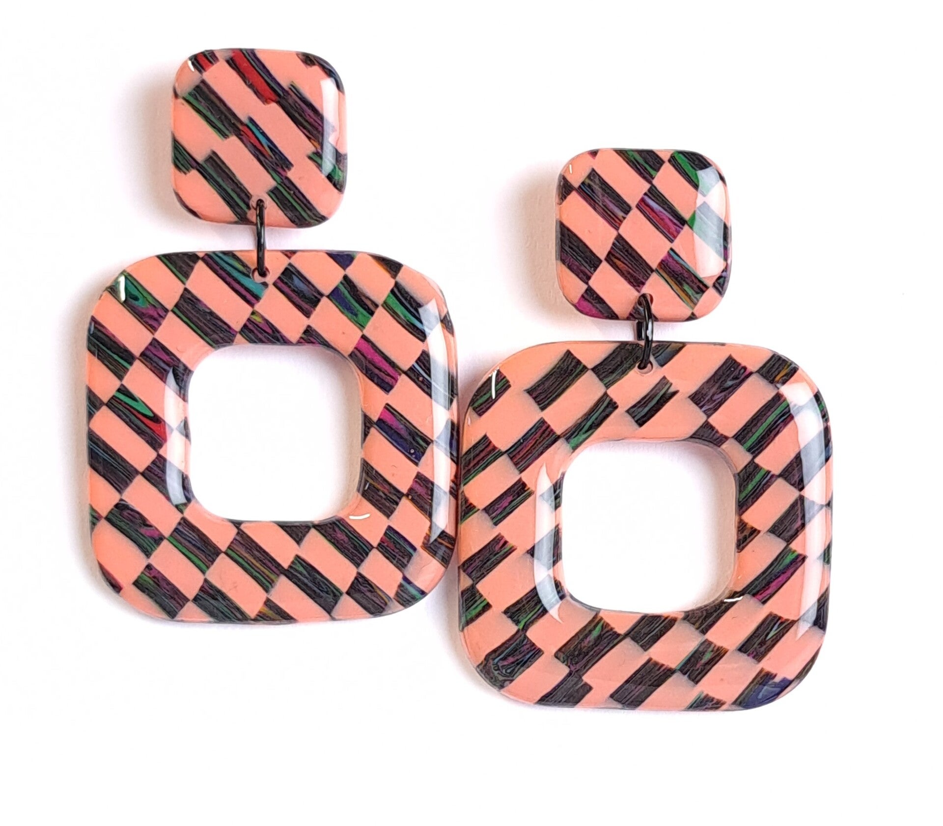 Funky blocks vierkant oorbellen