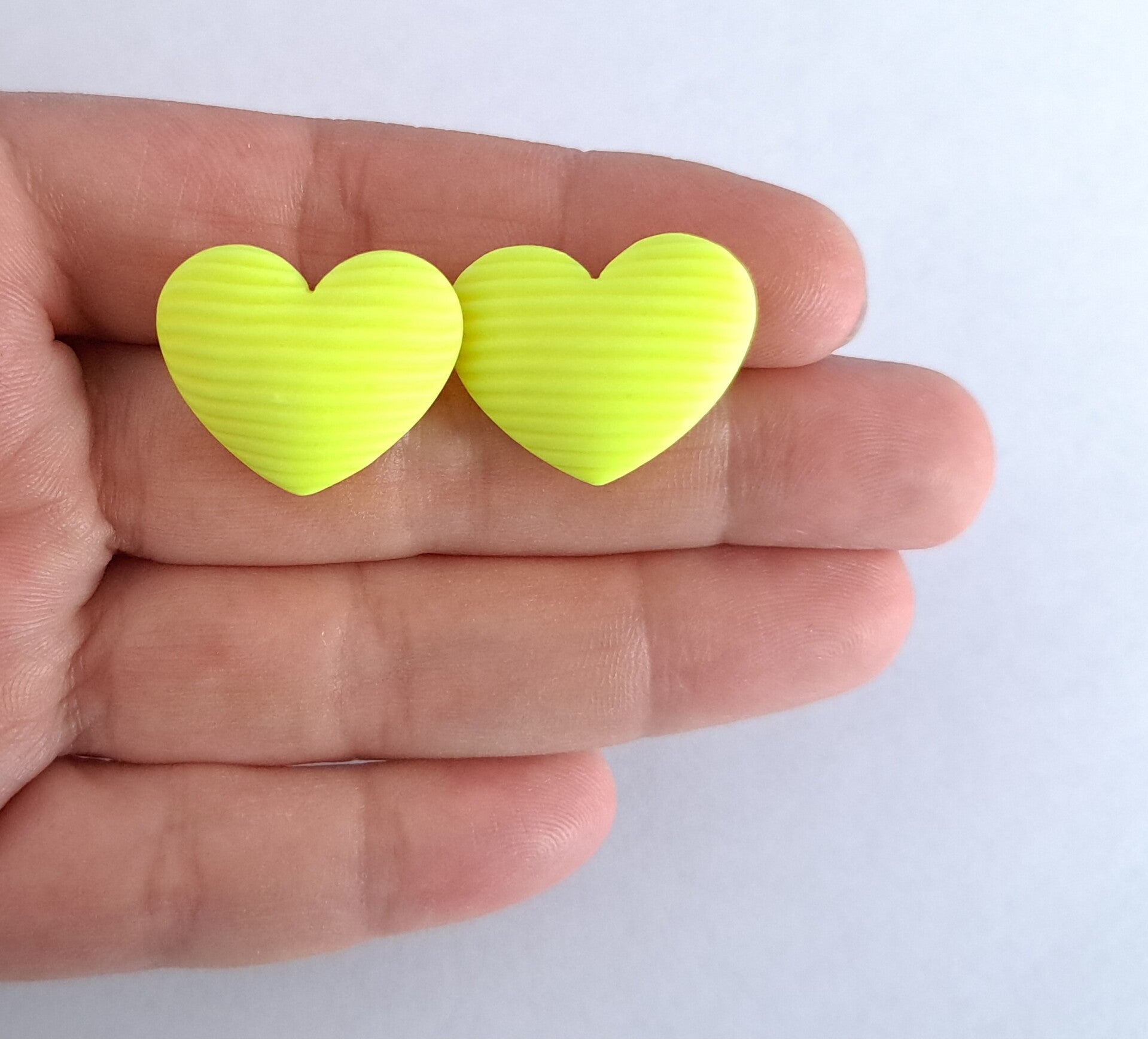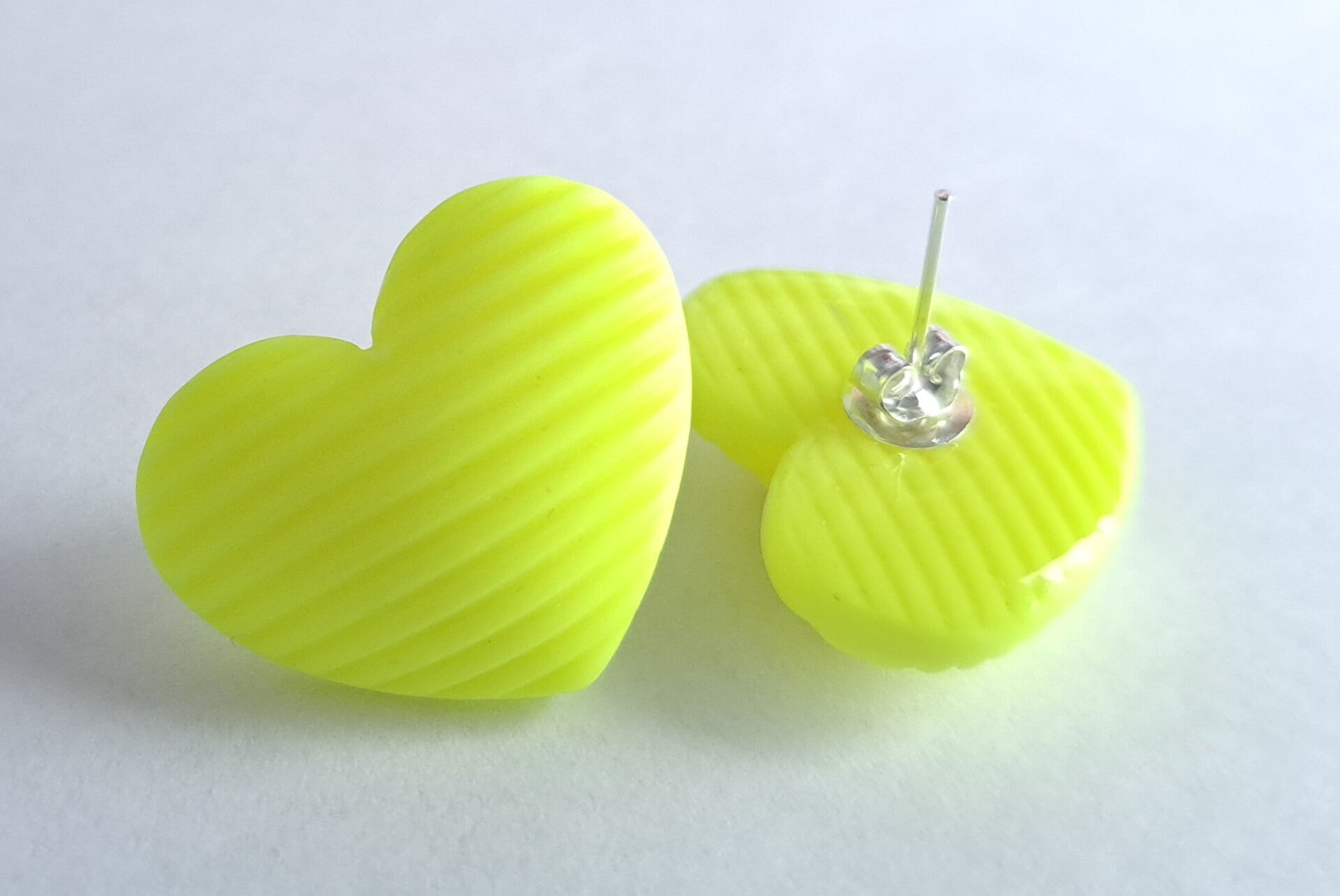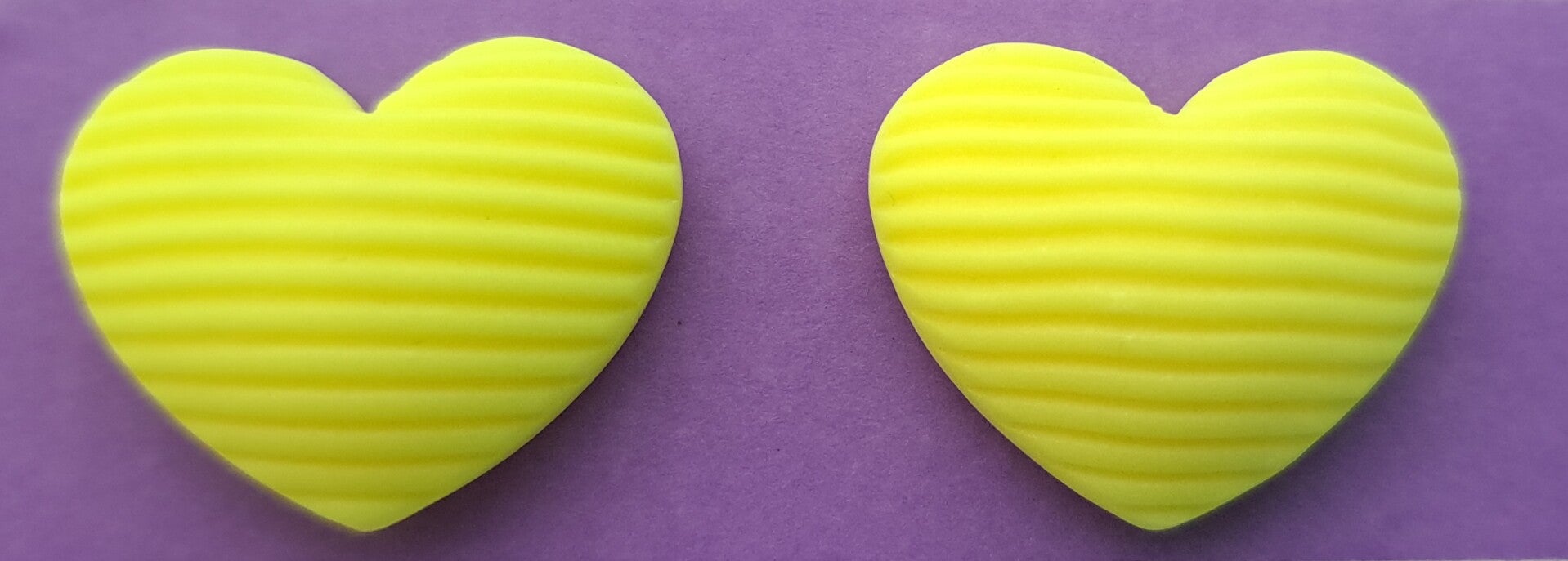 NEON hartjes oorbellen geel streepjes (medium)