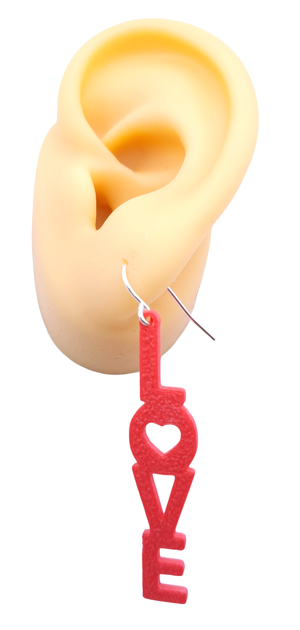 Deze super leuke originele 'love' oorbellen zijn gemaakt met een 3D printer van biologisch afbreekbaar filament van melkzuur.