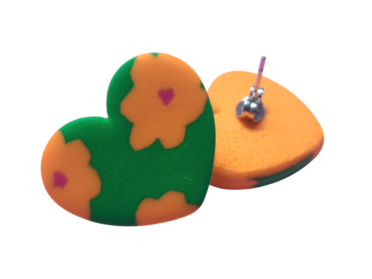 Gemaakt in de kleuren fris groen, prachtig oranje en een roze bloem hartje.