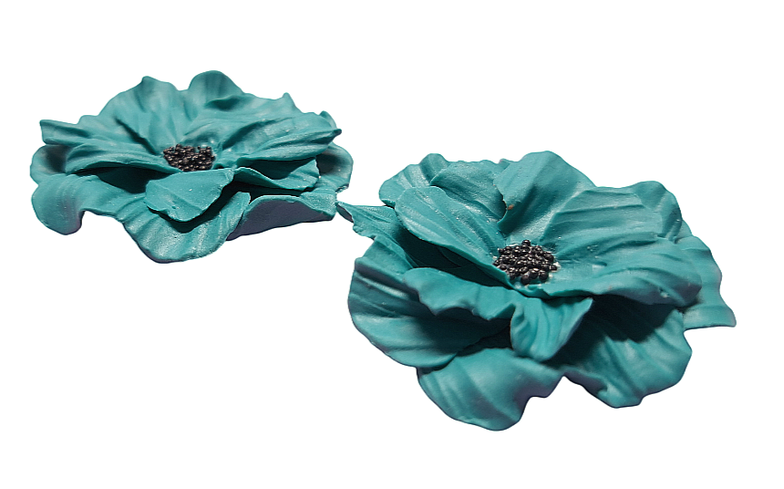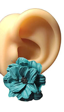 Geweldige bloem oorbellen petrol/zwart