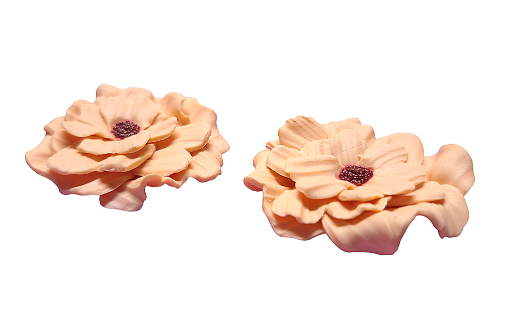 Dit setje is in een mooie lichte perzik kleur met als bloemhart hele kleine bordeaux rode kaviar beads.
