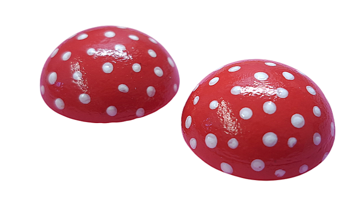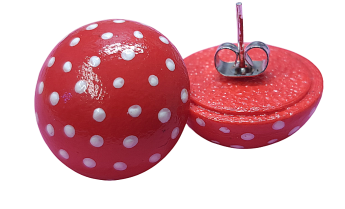 Heerlijk vrolijk deze rood witte stip bol oorbellen!