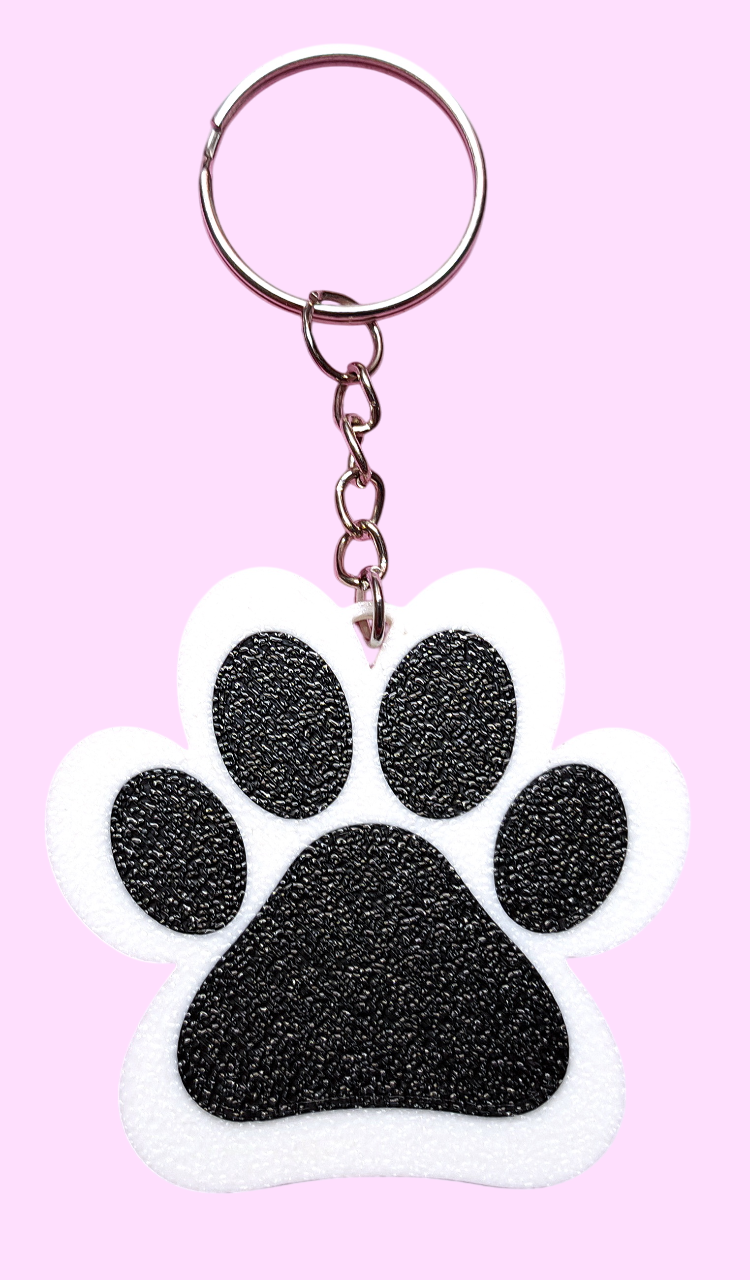Een schattige pootafdruk in een mooie zwart kleur, met een strak witte ondergrond.