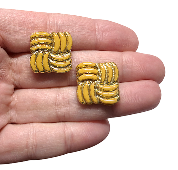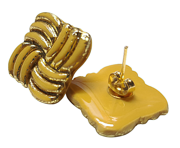 Glamour vierkant mosterd/goud oorbellen