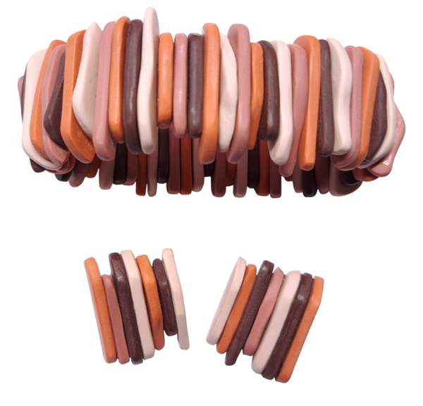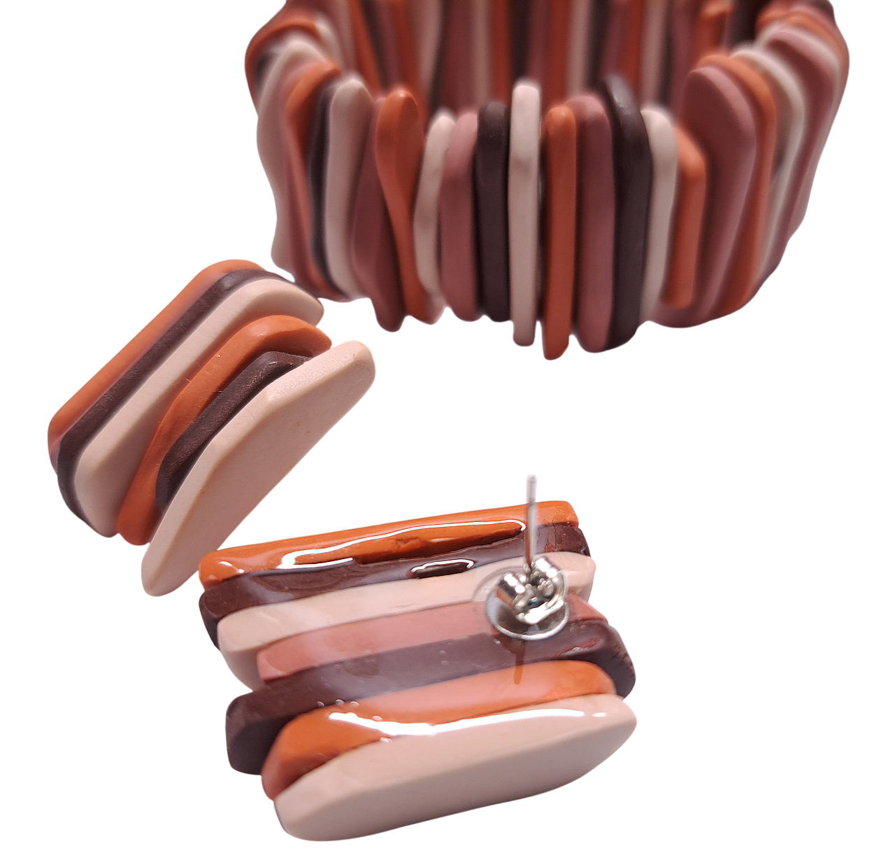 Een chunky armband en oorbellen in prachtige bruin tinten.